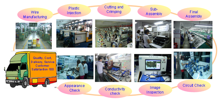 Customers are number one" is our philosophy and we manufacture self made components and assembly the wiring harness product and provide total solution about wiring for customers. And continually working on varieties improvement including Human, Machine, Method and Material areas. Moving ahead toward to "Customer satisfaction 100" as our target.